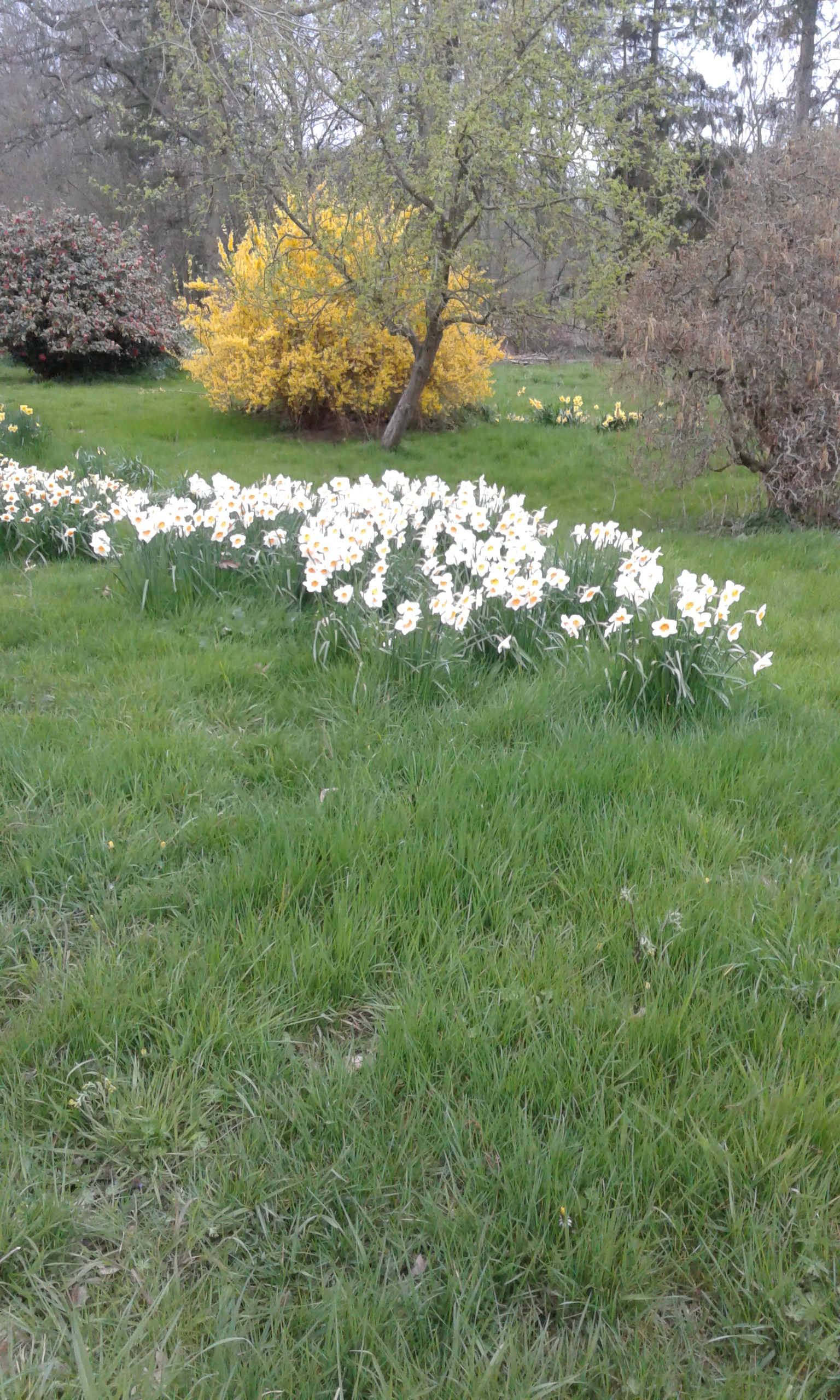 No good. Bush-free. Coming back, a woman (also masked, maybe in her late 60s) appeared at the other end of a path that skirted a small grassy area. It’s best to be kind whenever you can. I decided to walk out onto the sodden grass before we passed so that she would not have to come close.